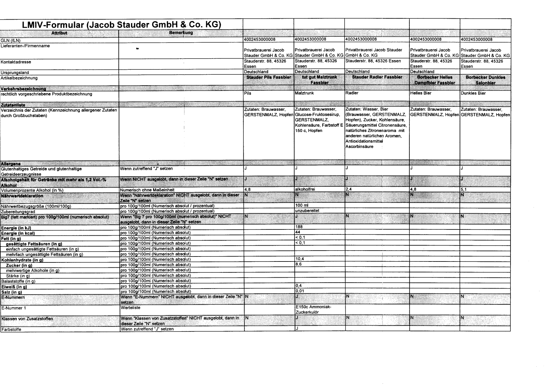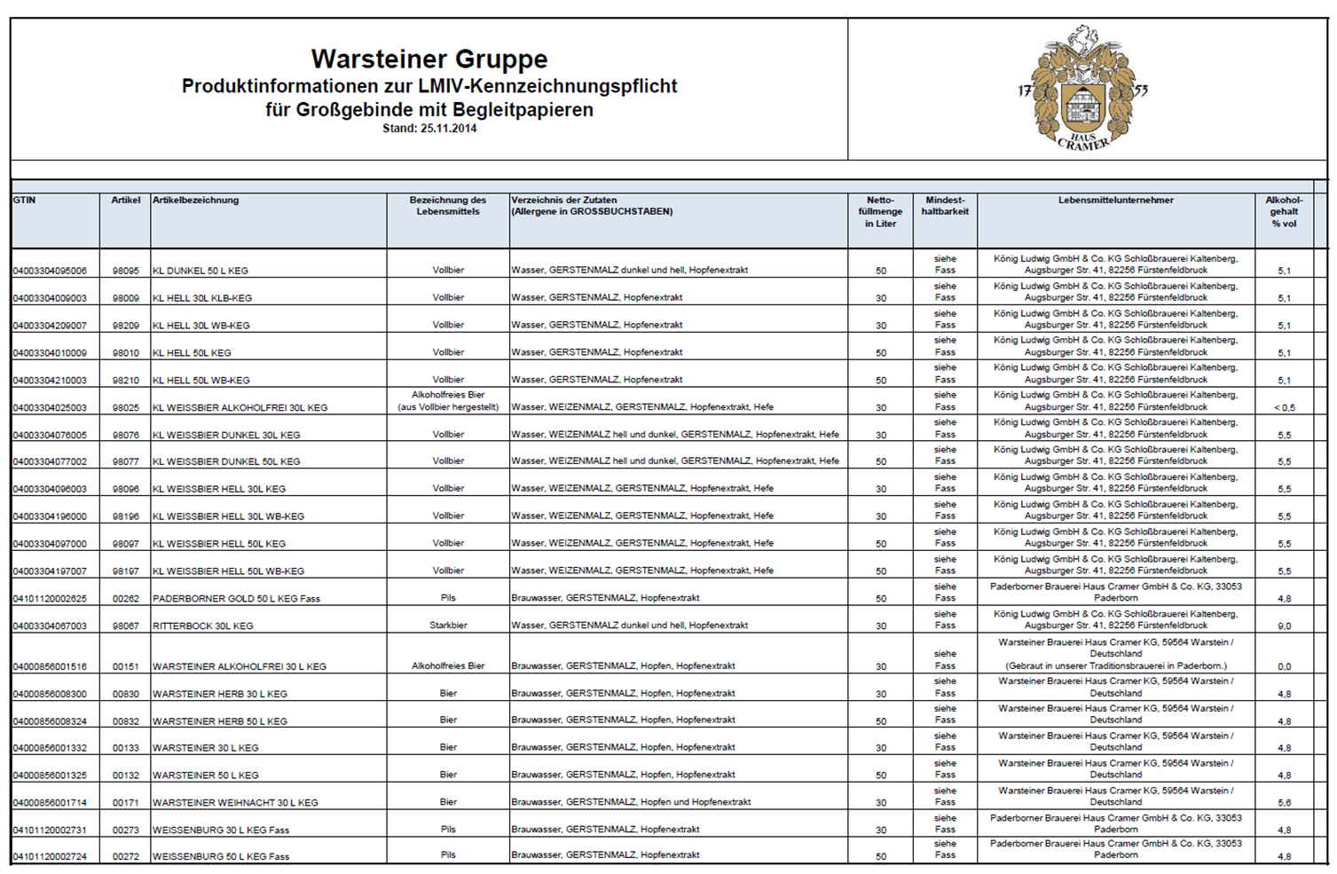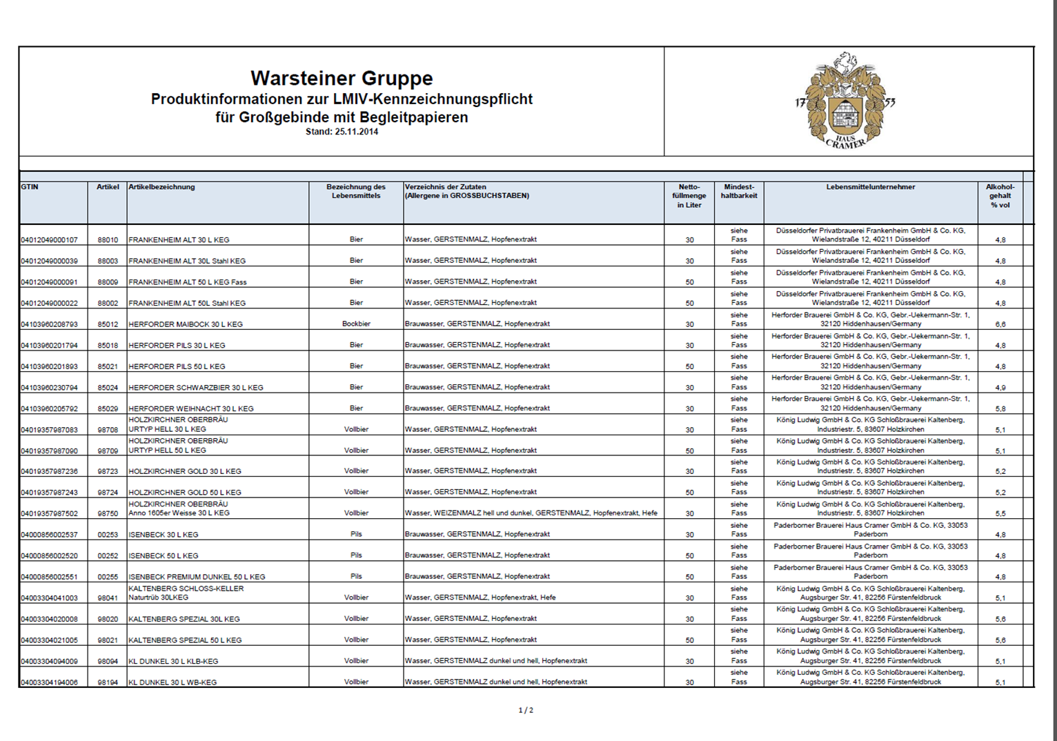 Auf dieser Seite finden Sie Links zu Produktinformationen zur Lebensmittel-Informationsverordnung.